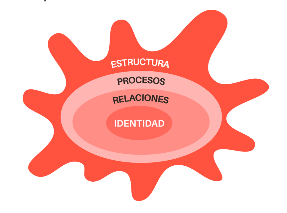 4. En el nivel de la estructura, es decir, la forma tangible que adoptamos como Organización y que se manifiesta en nuestros edificios, marcas, órganos de gobierno o máquinas